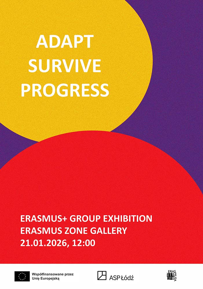 Koniec semestru zimowego to moment podsumowania pracy studentów zagranicznych, którzy uczestniczyli w wymianie akademickiej w łódzkiej ASP w ramach programu Erasmus+. Z tej okazji Galeria Strefa Erasmusa zaprasza na otwarcie wystawy „Adapt. Survive. Progress”.