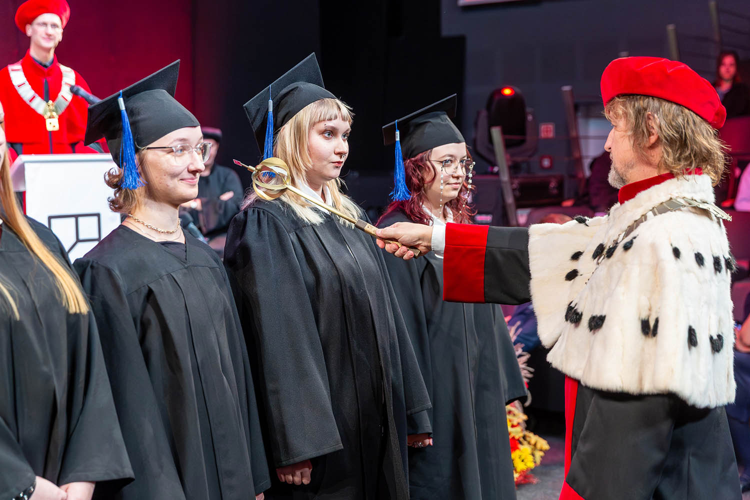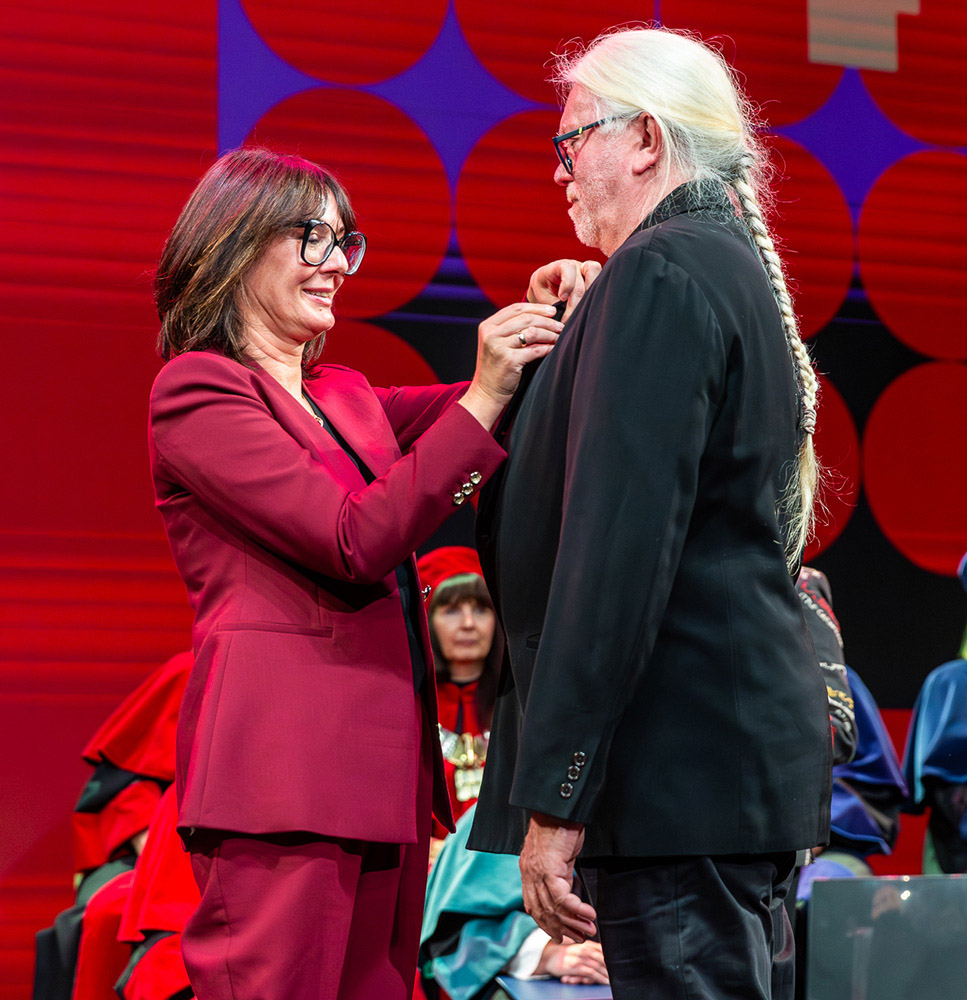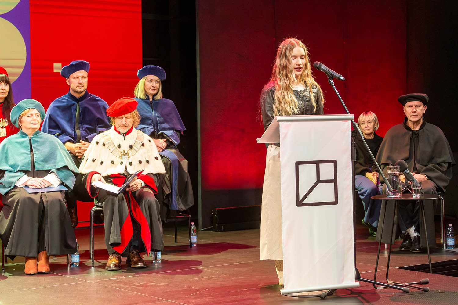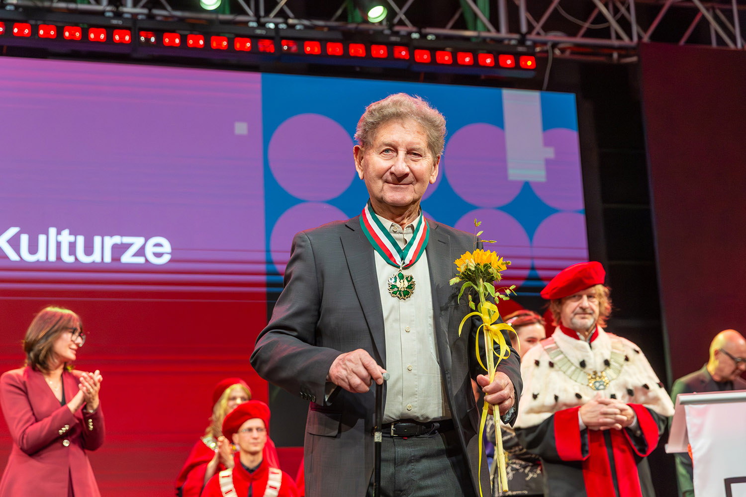 Jednym z najważniejszych momentów inauguracji było nadanie tytułu doktora honoris causa prof. Mirosławowi Bałce – wybitnemu polskiemu artyście, który dołączył do grona uhonorowanych tą godnością jako dziesiąty w historii uczelni. W wygłoszonej laudacji prof. Tomasz Matuszak podkreślił, że artysta konsekwentnie podejmuje w swojej twórczości fundamentalne tematy ludzkiego doświadczenia – ciała, pamięci, przemijania, śmierci i Zagłady – nadając im głęboki, uniwersalny wymiar.