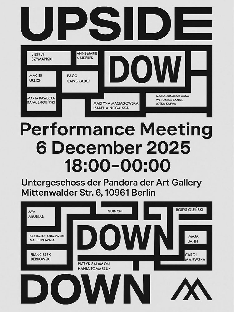 Karolina Majewska, doktorantka Akademii Sztuk Pięknych w Łodzi, zaprezentowała premierowy performans „Double Body” podczas wystawy „UPSIDE DOWN – Performative Evening”, który odbył się 6 grudnia 2025 roku w przestrzeni Untergeschoss der Pandora der Art Gallery w Berlinie.