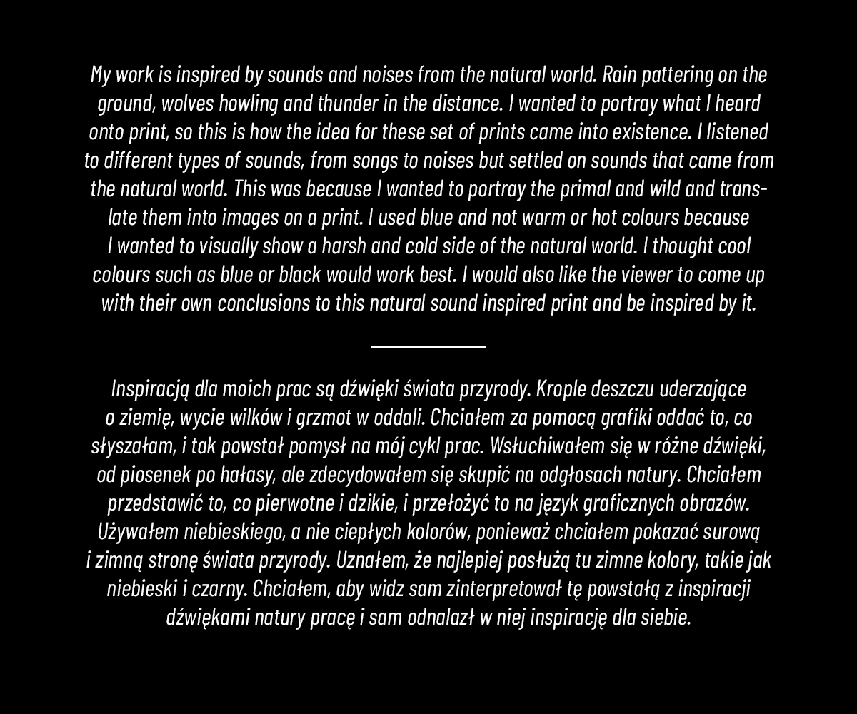 W moich grafikach przeważają dwa tematy: emocje i pierwotna natura. To one mają wpływ na moje codzienne życie, dlatego wykorzystuję je w moich pracach.