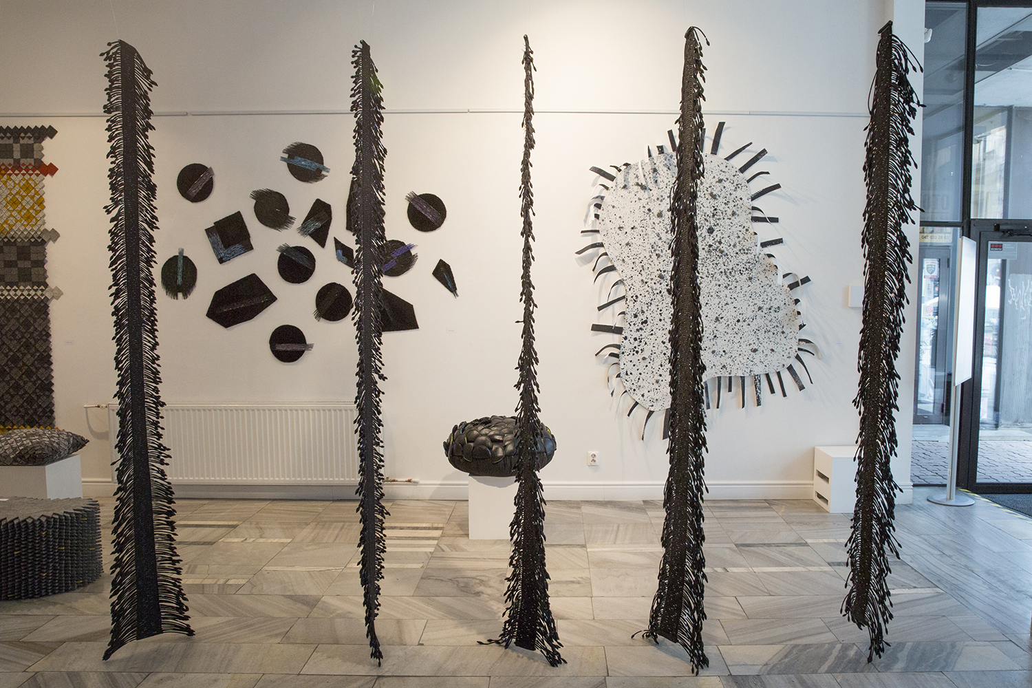 Wystawa odzwierciedla charakter programu pracowni i otwartego podejścia do interpretacji tkaniny we wnętrzu. Widzimy tkaninę w różnych odsłonach: w postaci dywanów, siedzisk, elementów lamp, poduszek czy przeplotów w konstrukcji fotela. Poniektóre realizacje mają charakter unikatowy, podkreślający piękno splotu, miękkość tworzywa, uwydatnione kunsztem wykonawczym.