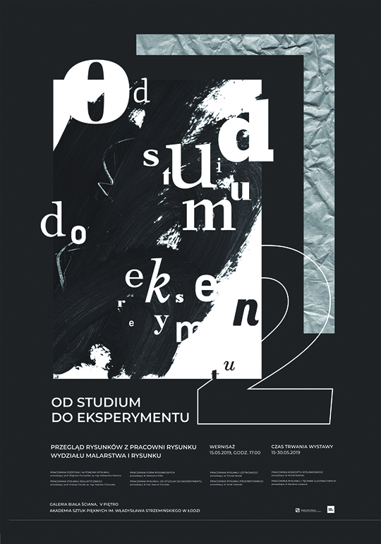 15 maja 2019 r. o godz. 17.00 w Galerii Biała Ściana (Vp, budynek główny ASP ul. Wojska Polskiego 121) odbędzie się wernisaż wystawy „Od studium do eksperymentu II”. Ekspozycja będzie czynna do 30 maja 2019 r.
