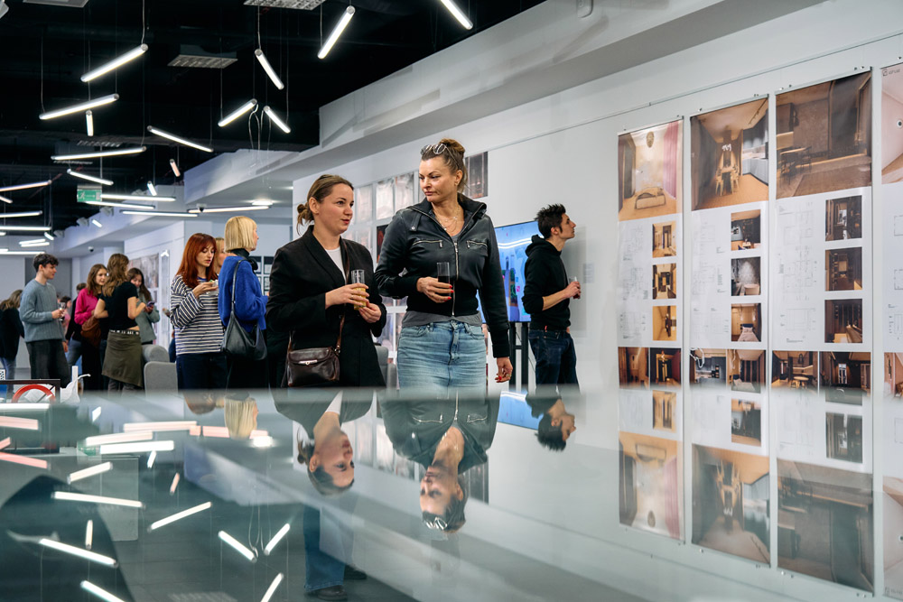 Studenci, poprzez swoje realizacje, podejmują dialog z aktualnymi tendencjami, poszukując autorskich odpowiedzi na pytania o estetykę, funkcjonalność i społeczną odpowiedzialność architektury wnętrz w nadchodzących dekadach.