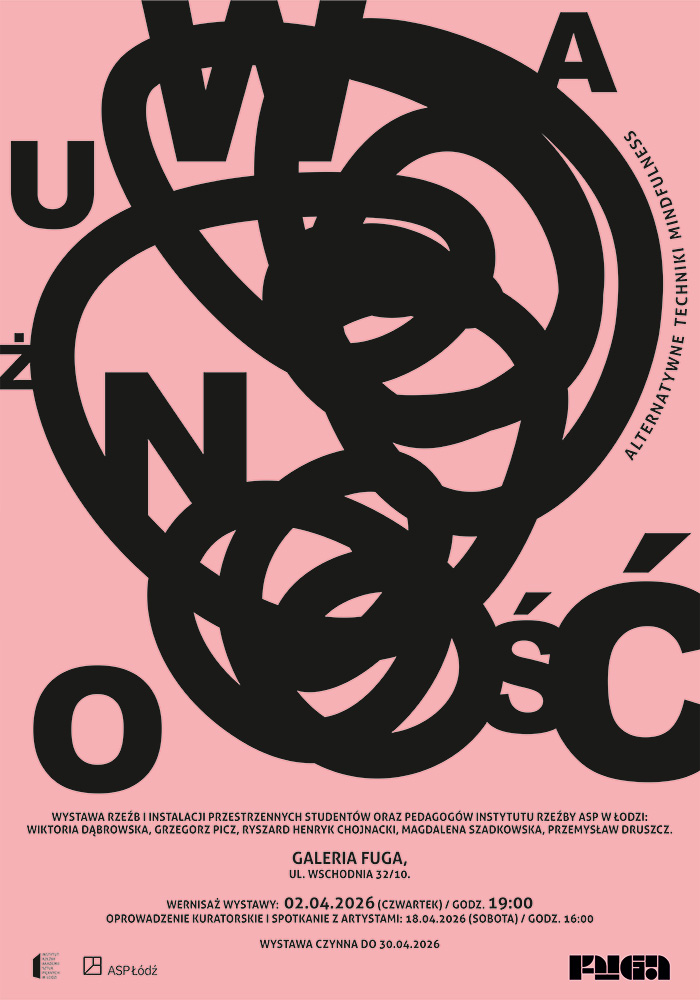Wystawa „Uważność” w Galerii FUGA stanowi refleksję nad sposobami doświadczania rzeczywistości poprzez sztukę rzeźby, sytuując percepcję jako proces wielowymiarowy, angażujący ciało i świadomość odbiorcy. Temat ten rozwija pięć instalacji rzeźbiarskich autorstwa studentów i nauczycieli akademickich Instytutu Rzeźby Akademii Sztuk Pięknych w Łodzi.