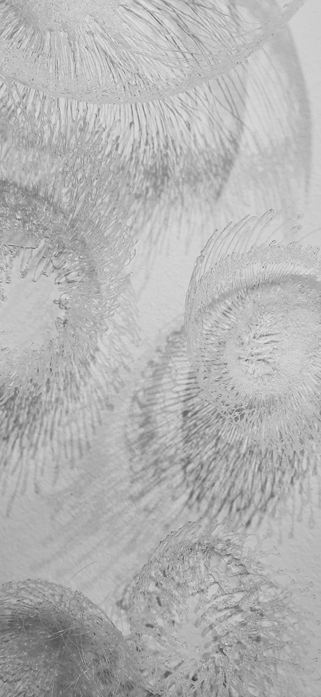 Szczególnym rozwinięciem tej myśli jest instalacja MEMORY III. Transparentne formy kuliste niemal znikają w przestrzeni, podczas gdy ich wyraźne cienie budują ekspresję obrazu. To odwrócenie porządku nie jest zabiegiem formalnym, lecz próbą uchwycenia paradoksu obecności: tego, że czasem to, co niewidzialne, oddziałuje silniej niż to, co materialne. Cień nie odtwarza rzeczy wprost — przechowuje pamięć o nich. Przezroczystość i cień przestają być przeciwieństwami, stają się współzależnymi formami istnienia.