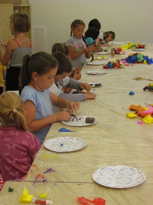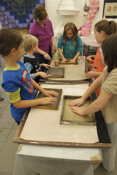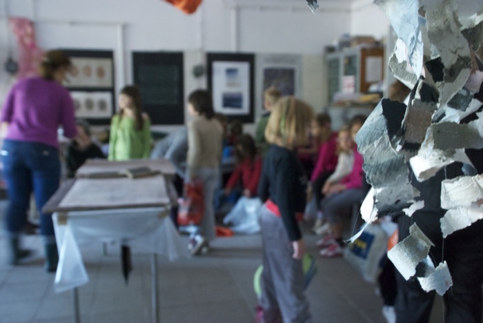 Podsumowaniem drugiego cyklu warsztatów była wizyta w pracowni kierowanej przez Panią prof. Ewę Latkowską-Żychską Pracowni Papieru. Dzieci miały okazję pod kierunkiem studentki Pani Justyny Rusieckiej uczestniczyć w czerpaniu papieru. Na pamiątkę wizyty w Pracowni mali uczestnicy otrzymali próbkę stworzonego przez siebie papieru. Dzieci zwiedziły także inne mieszczące się w Uczelni pracownie (m.in. Tkalnię, Pracownię Rzeźby, Pracownię Rysunki i Komputerowe Centrum Projektowania CYCERON.