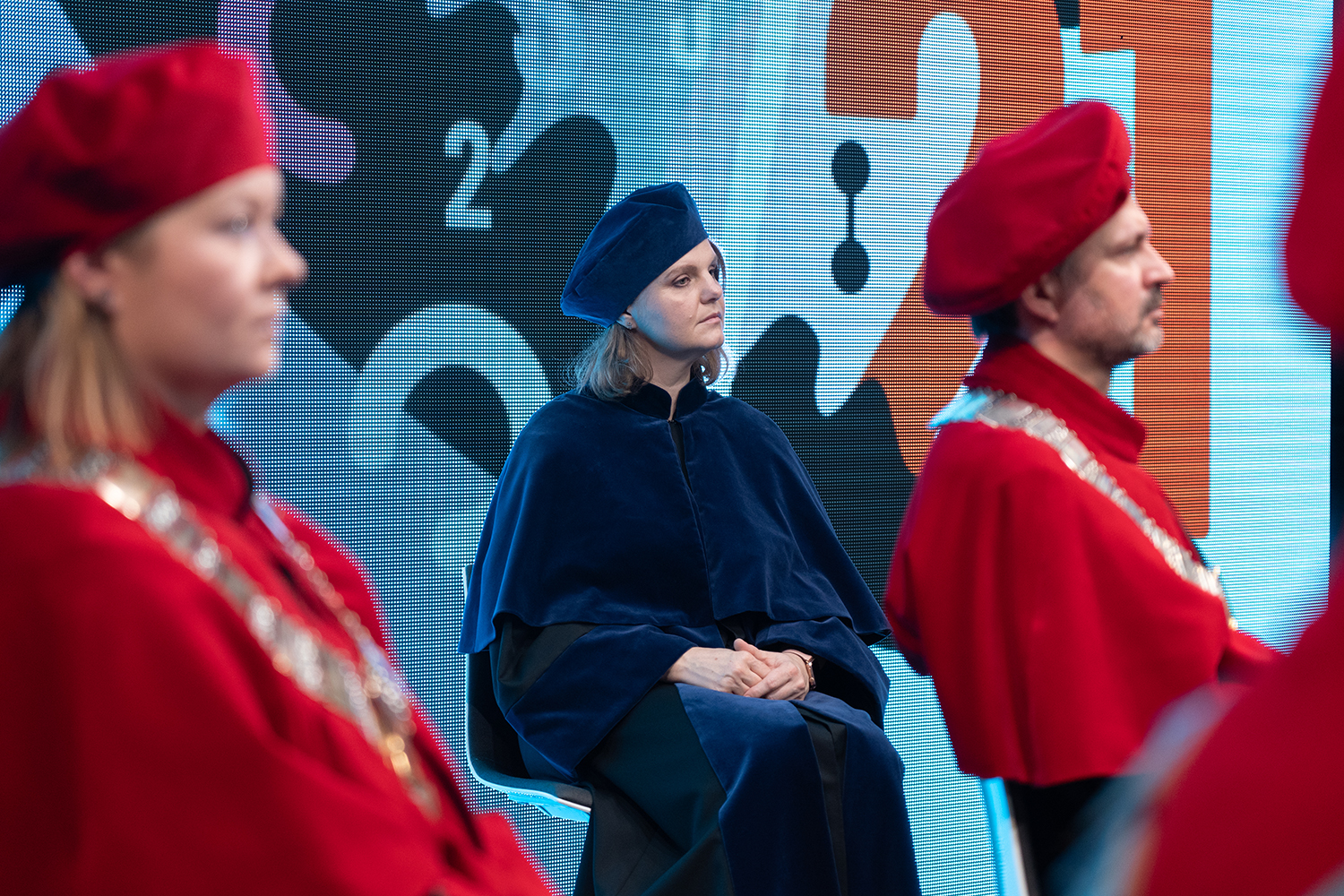 Po uroczystym powitaniu gości i przedstawieniu nowych władz uczelni na kadencję 2020-2024 głos zabrali Jarosław Wartak Dyrektor Departamentu Szkolnictwa Artystycznego i Edukacji Kulturalnej MKiDN oraz Tobiasz Bocheński Wojewoda Łódzki.