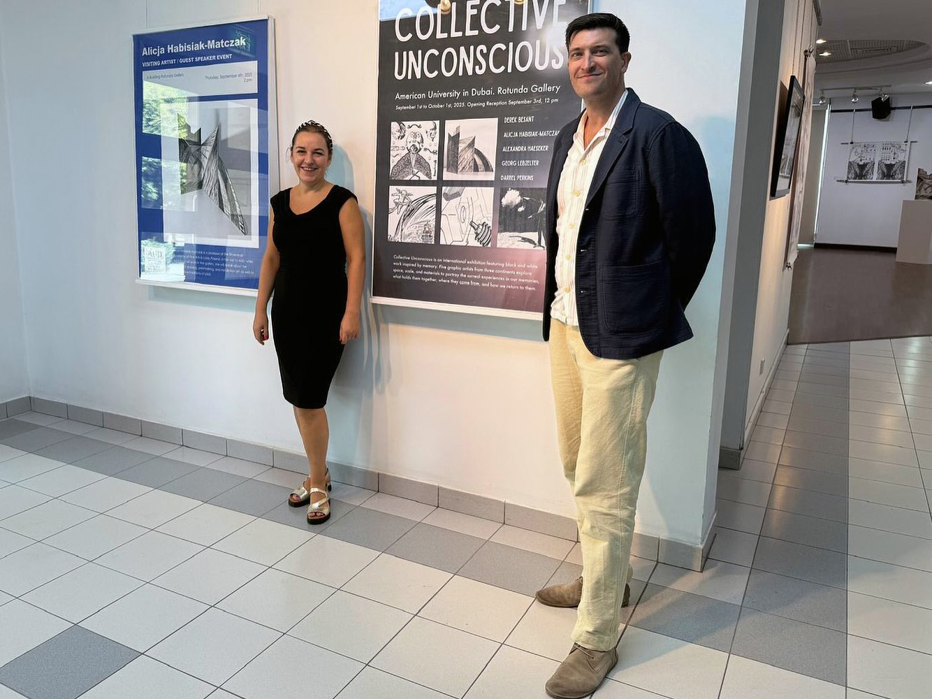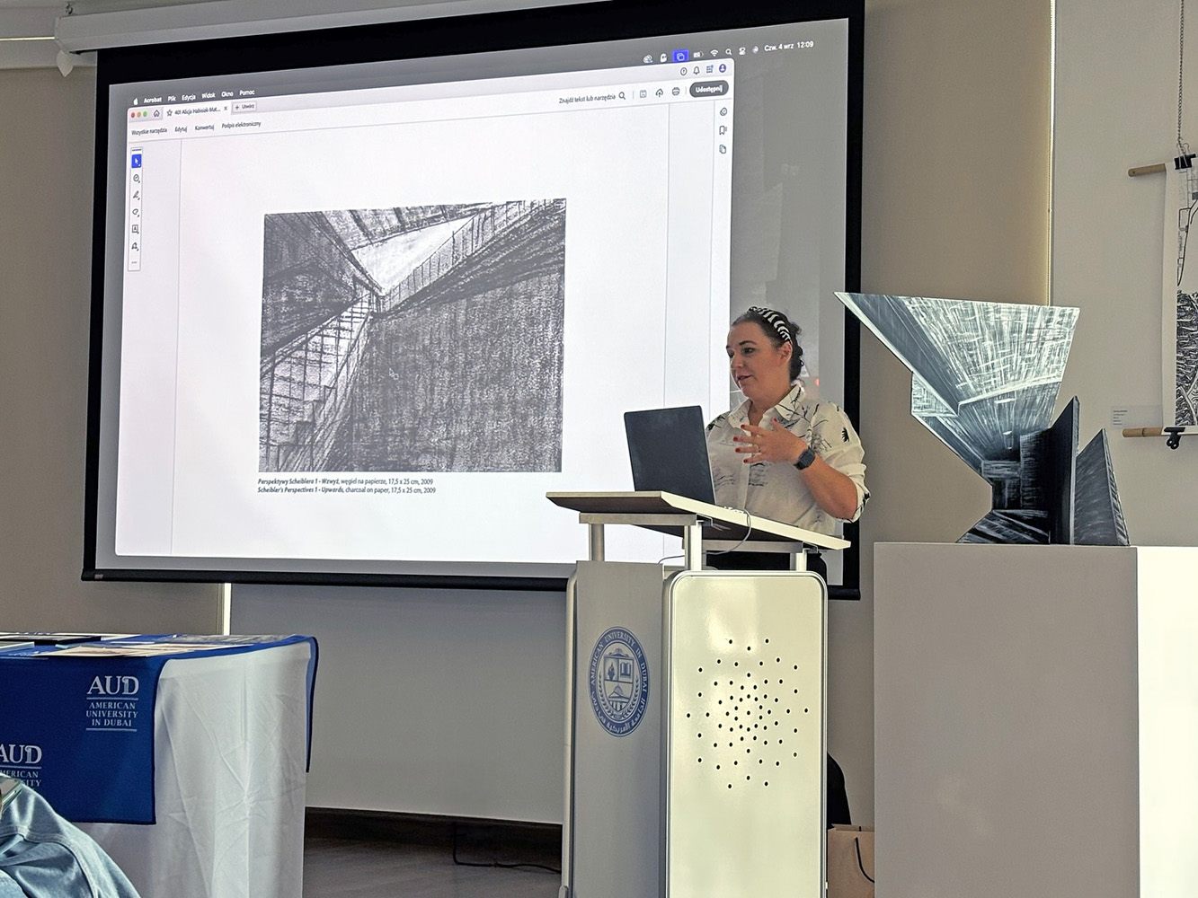 We wrześniu w Uniwersytecie Amerykańskim w Dubaju, w Zjednoczonych Emiratach Arabskich, odbył się wykład dr hab. Alicji Habisiak-Matczak, prof. uczelni. Tematem prezentacji były innowacyjne rozwiązania technologiczne i estetyczne stosowane przez artystkę w dziedzinie grafiki, rysunku i rzeźby.