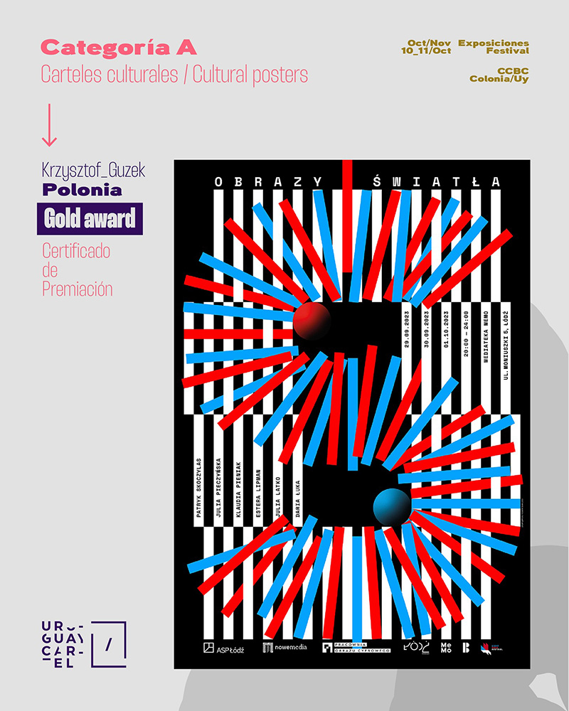 Z radością informujemy, że dr Krzysztof Guzek, dyrektor Instytutu Nowych Mediów i Kompozycji na Wydziale Sztuk Pięknych ASP w Łodzi, otrzymał złoty medal podczas Międzynarodowego Biennale Plakatu w Urugwaju w kategorii Plakat kulturalny.